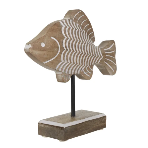 ESCULTURA DECORACAO PRAIA MAR PEIXE MADEIRA BEGE19X19X5CM