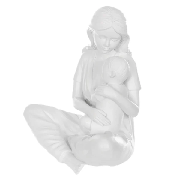 ESCULTURA RESINA FAMILIA MAE E FILHO BRANCO 15X12X9CM