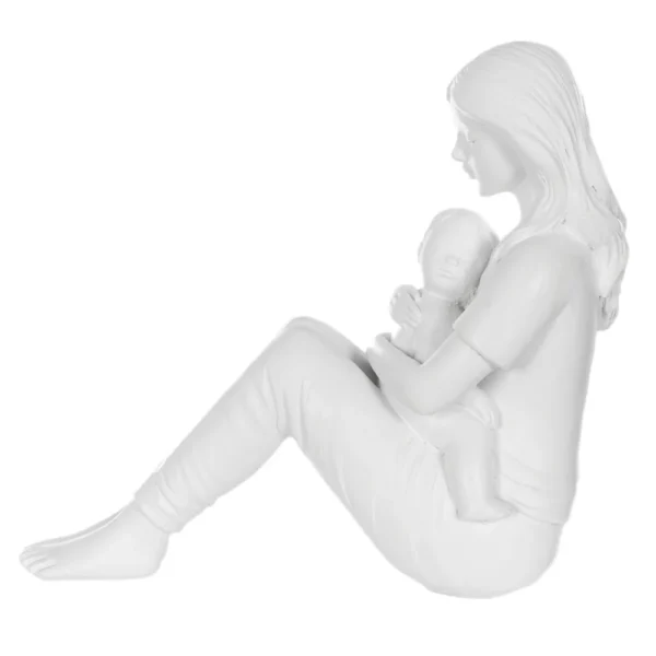 ESCULTURA RESINA FAMILIA MAE E FILHO BRANCO 15X17X8CM