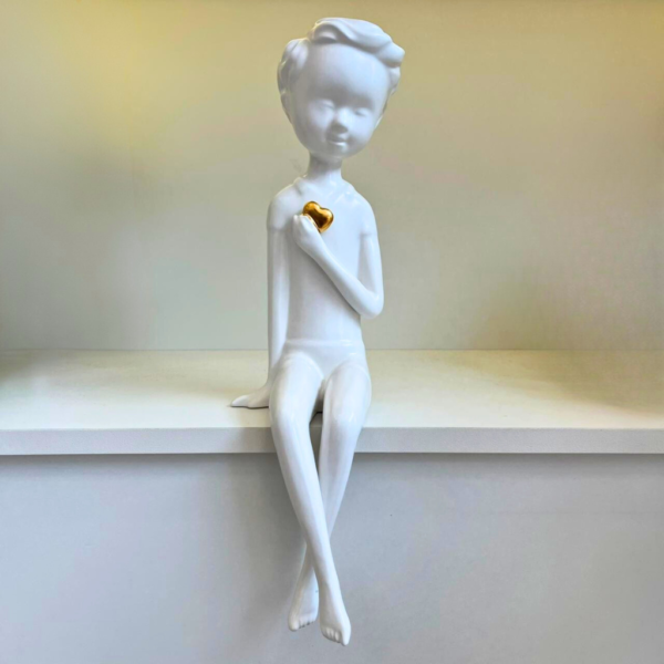 ESCULTURA PRATELEIRA LIVRO MENINO CORACAO DOURADO 37X9X11CM