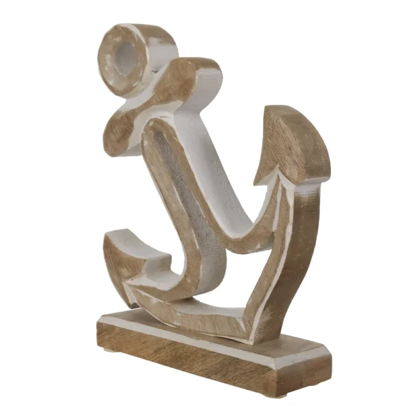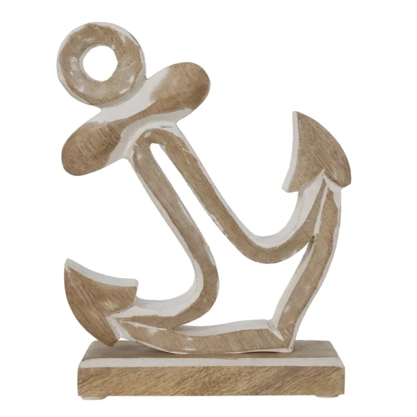ESCULTURA DECORATIVA MADEIRA PRAIA MAR ANCORA BEGE 19,5X15CM