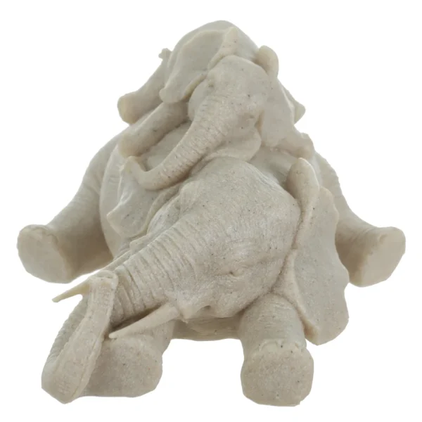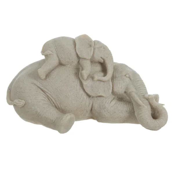 ESCULTURA RESINA FAMILIA ELEFANTES DEITADOS BEGE 10X18X14CM