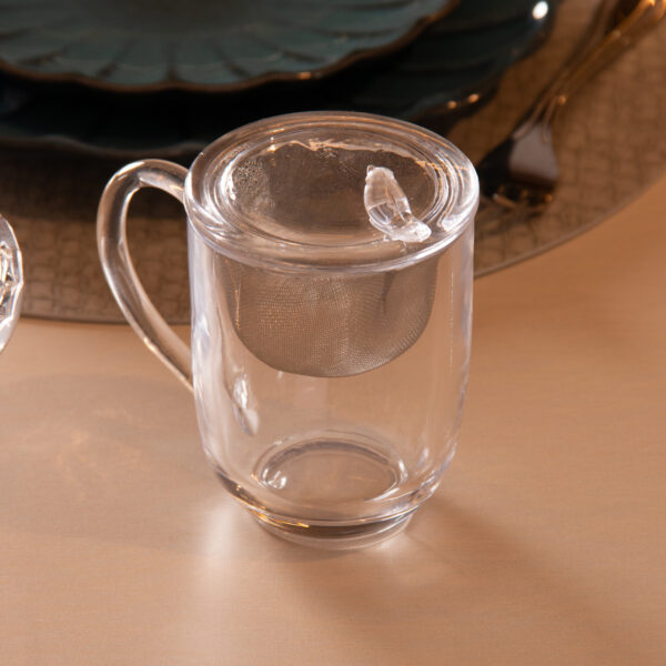 CANECA CRISTAL COM TAMPA E FILTRO PARA CHA BIRD 350ML