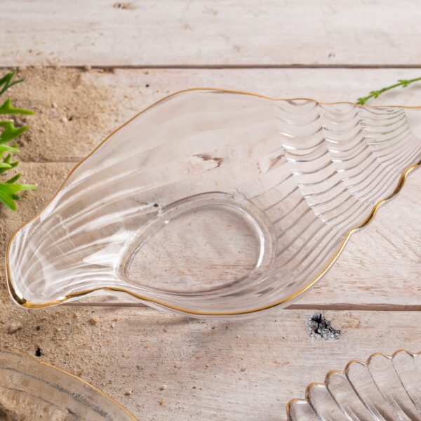 MINI TRAVESSA VIDRO SODO-CALCICO CONCHA C/FILETE DOURADO LEQUE 14×13,5cm