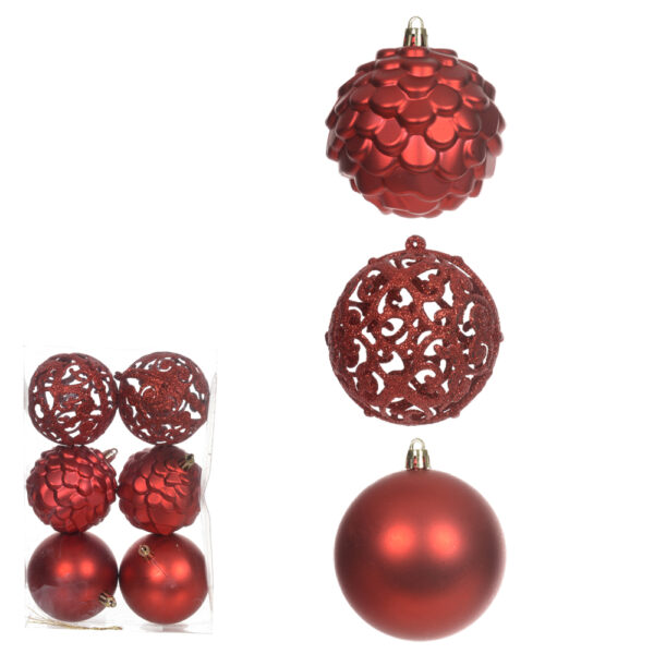 BOLA DECORADA NATAL C/6 UN VERMELHO 8cm