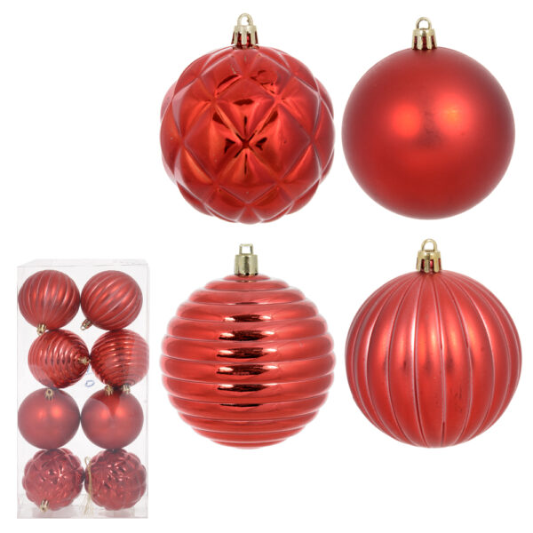 BOLA DECORADA NATAL C/8 UN VERMELHO 8cm