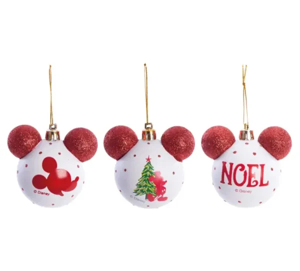 BOLA MICKEY C/GLITTER VERMELHO/VERDE/OURO 6cm DISNEY C/6 UN