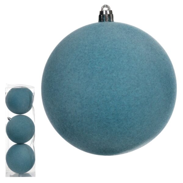BOLA DECORADA NATAL AVELUDADA PVC C/3 AZUL CLARO CANDY 10cm