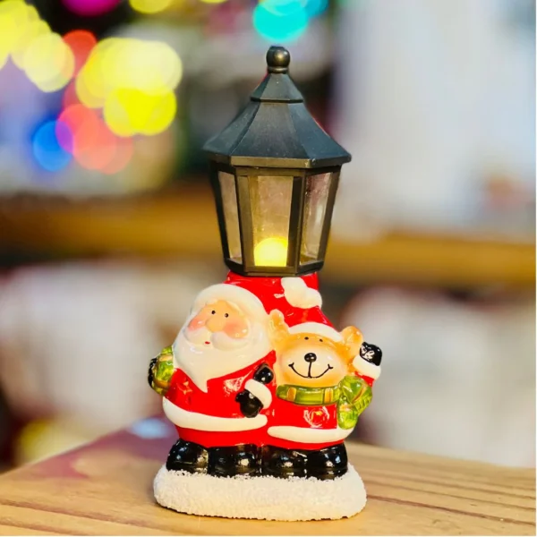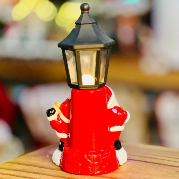 PAPAI NOEL COM POSTE C/ LED CERAMICA 19CM