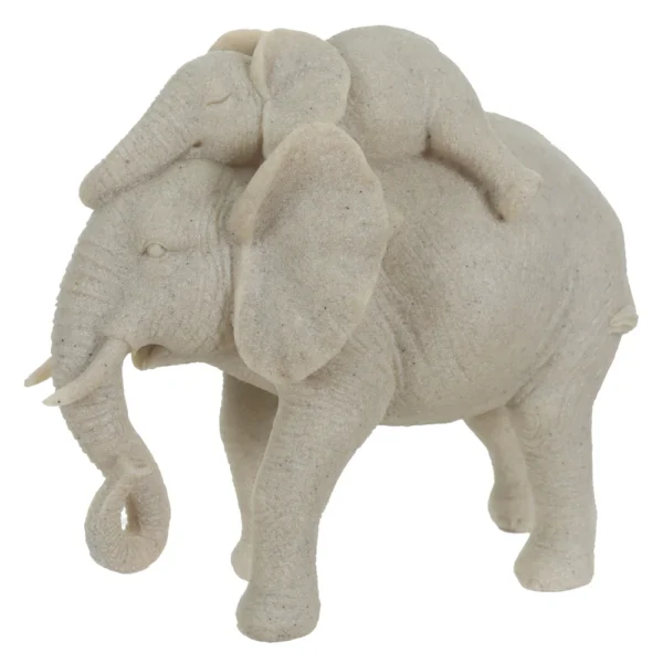 ESCULTURA DECORATIVA RESINA FAMILIA ELEFANTES BEGE 15X17X8CM