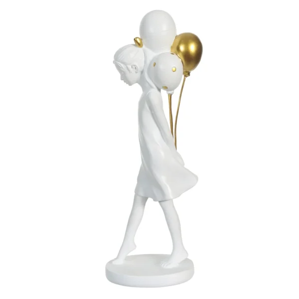 ESCULTURA RESINA MENINA BALOES BRANCO DOURADO 32X12CM