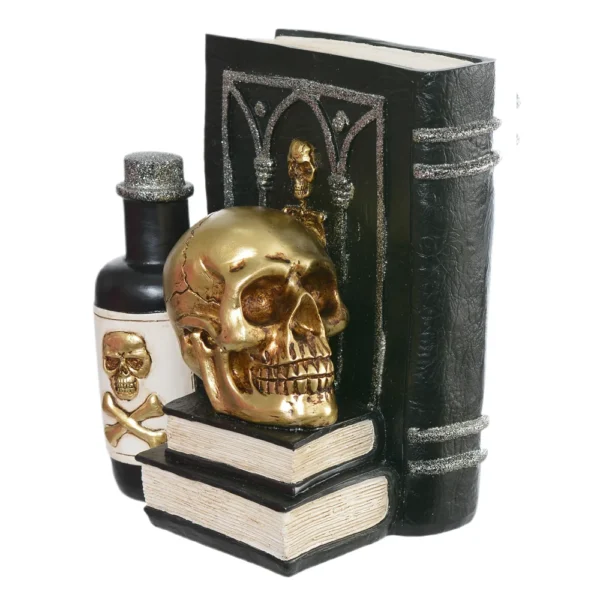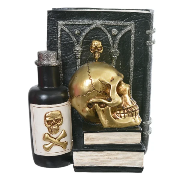 ENFEITE RESINA HALLOWEEN LIVRO ESQUELETO PRETO 20CM