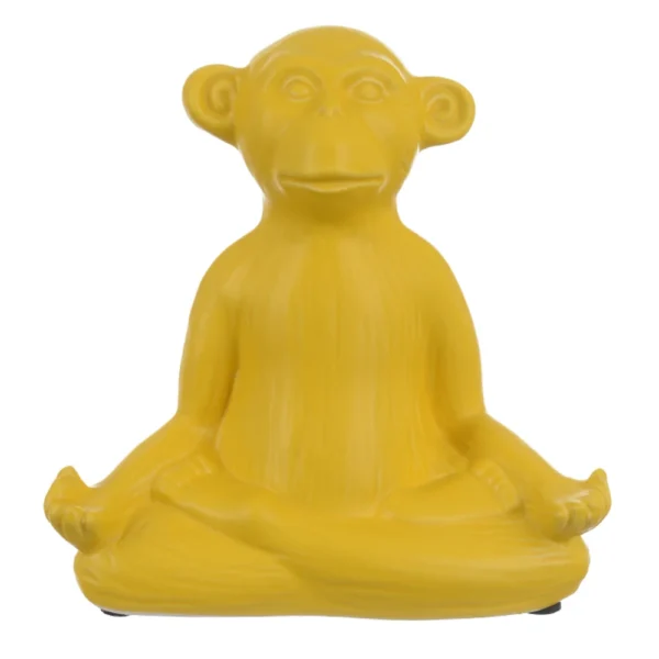 MACACO CERAMICA DECORATIVO YOGA MEDITACAO AMARELO 18X8CM