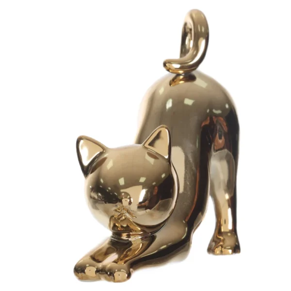 ESCULTURA DECORATIVA CERAMICA GATO DOURADO 12X11X5CM
