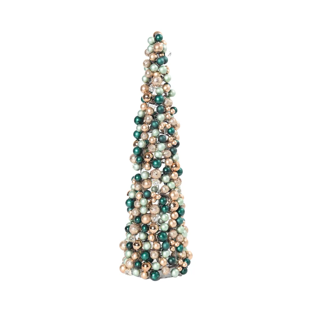 ARVORE CONE DECORATIVO C/ BOLAS DOURADO/ VERDE 55CM