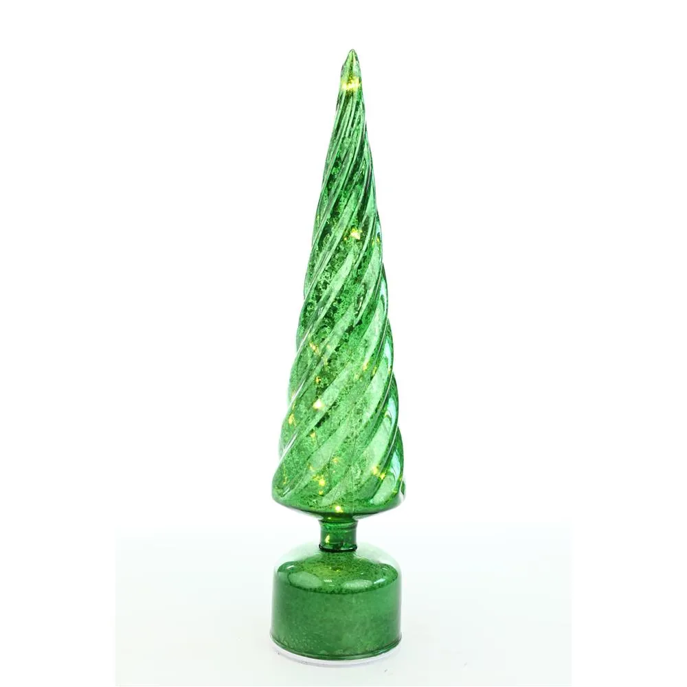 ARVORE VIDRO GIRATORIA C/ LED VERDE 40CM 3 PILHAS AA