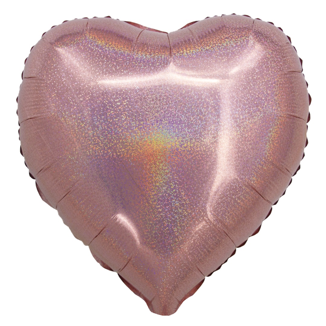 BALAO HOLOGRAFICO CORACAO C/ CANUDO ROSE GOLD 18 POLEGADAS