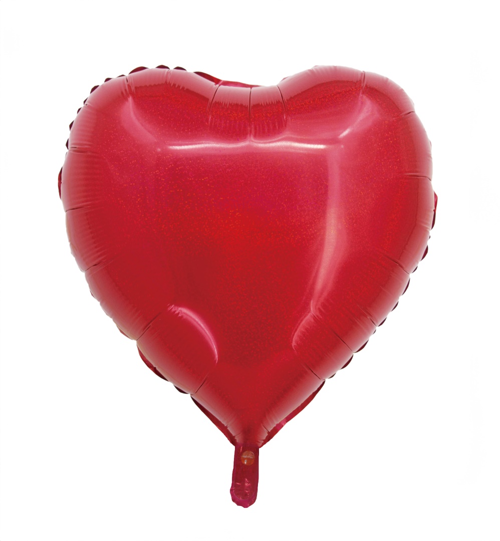 BALAO HOLOGRAFICO CORACAO C/ CANUDO VERMELHO 18 POLEGADAS