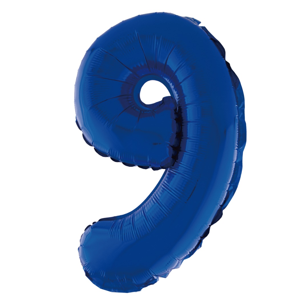 BALAO METALIZADO C/ CANUDO 16 POLEGADAS AZUL NUMERO 9