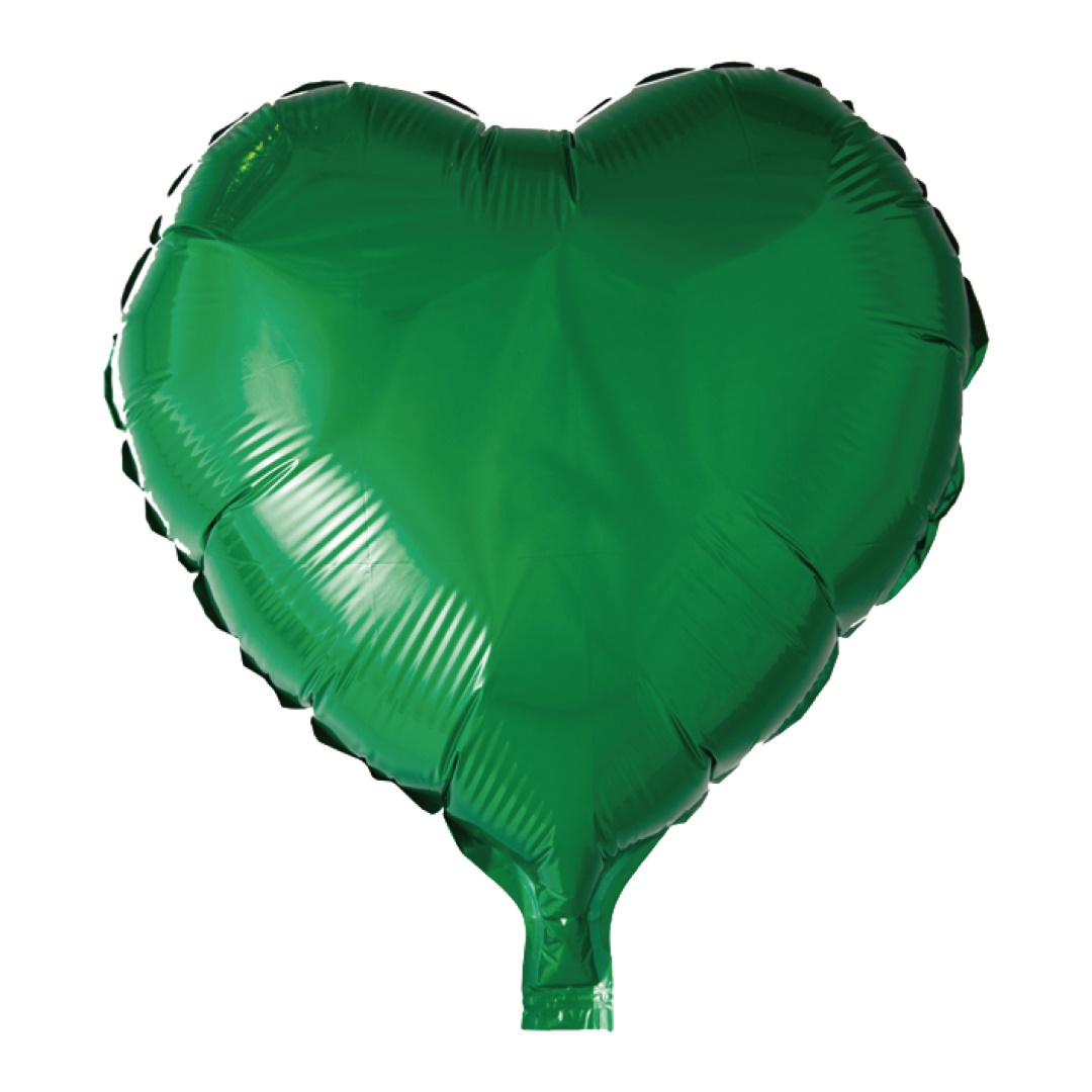 BALAO METALIZADO CORACAO C/ CANUDO VERDE 18 POLEGADAS