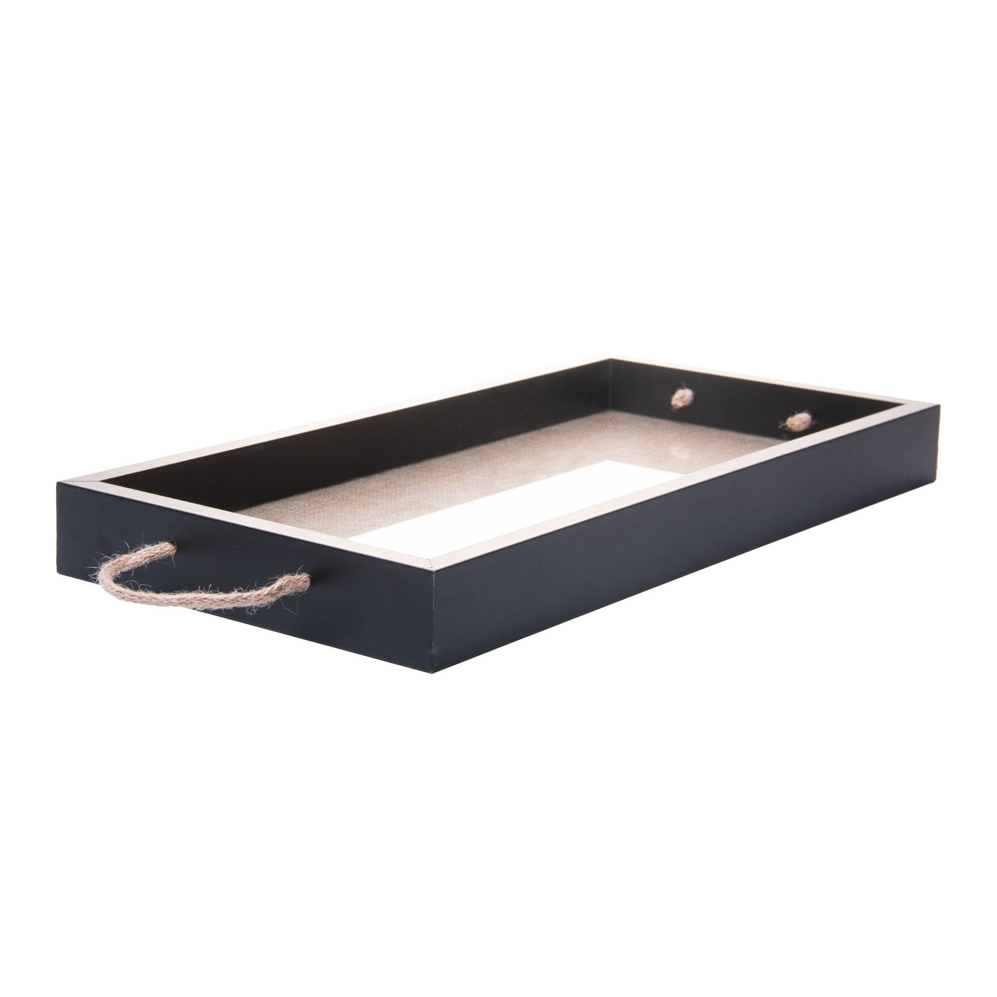 BANDEJA DECORATIVA DE MDF COM ALCA PRETA JUTE 40CM X 20CM X 4CM