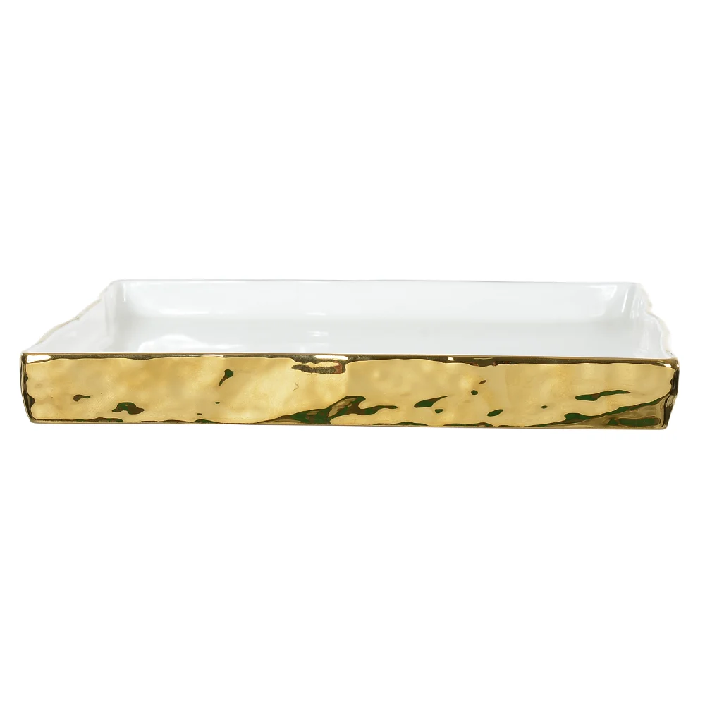 Bandeja Decorativa Porcelana Branco Dourado 23cm