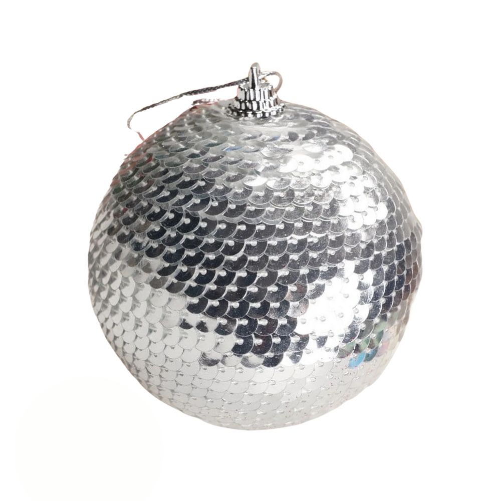 BOLA DECORADA LANTEJOULA PRATA 10CM C/3