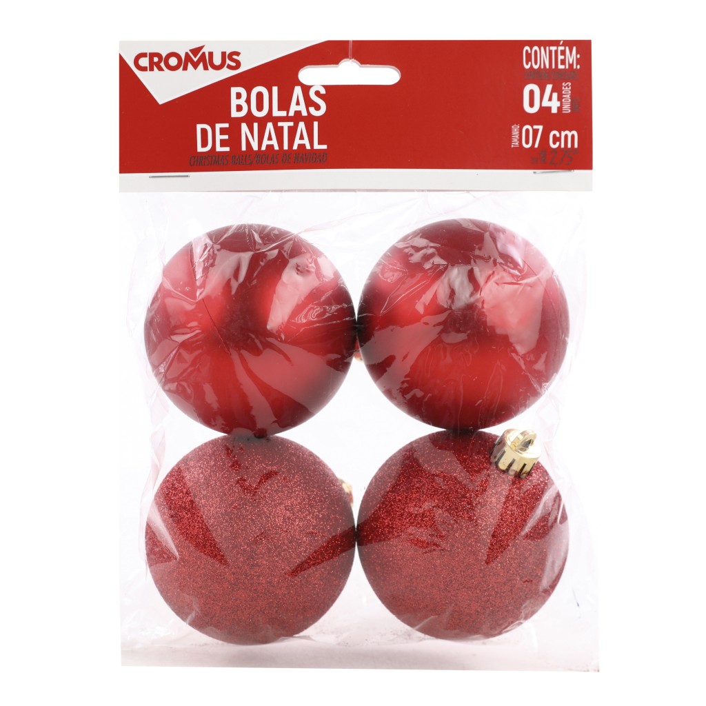 BOLA LISA FOSCA E GLITTER VERMELHO 7cm C/4 UN