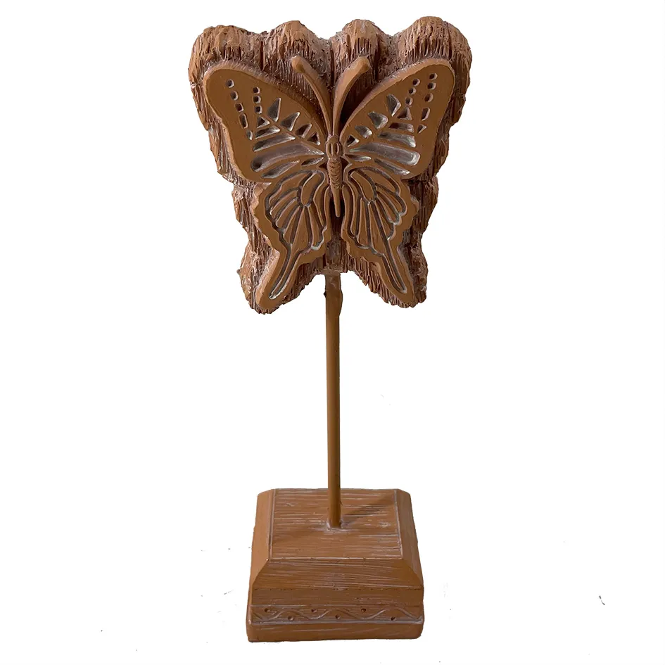BORBOLETA DECORATIVA DE RESINA MARROM 9X20X6CM