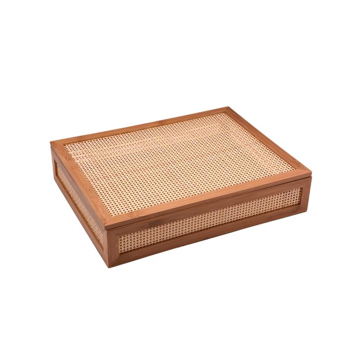 CAIXA EM MADEIRA NATURAL COM DETALHE EM TELA 35X27X8CM