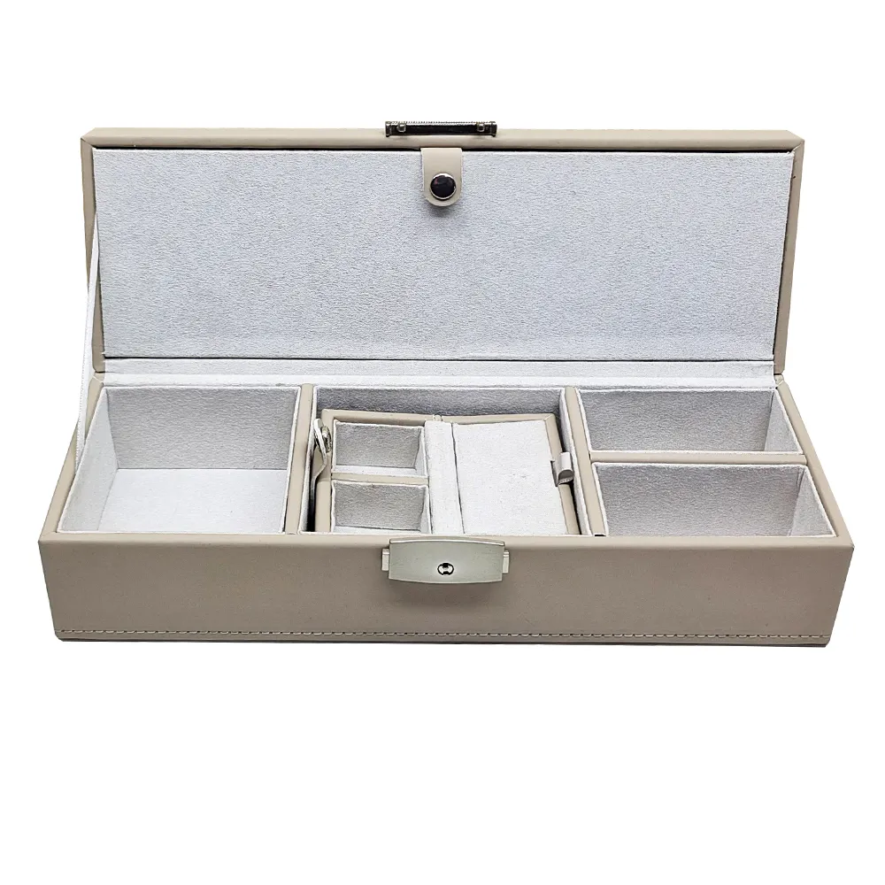 CAIXA PORTA JOIAS DECORATIVO EM MADEIRA PU E TECIDO CRU 28X10X8CM quantidade