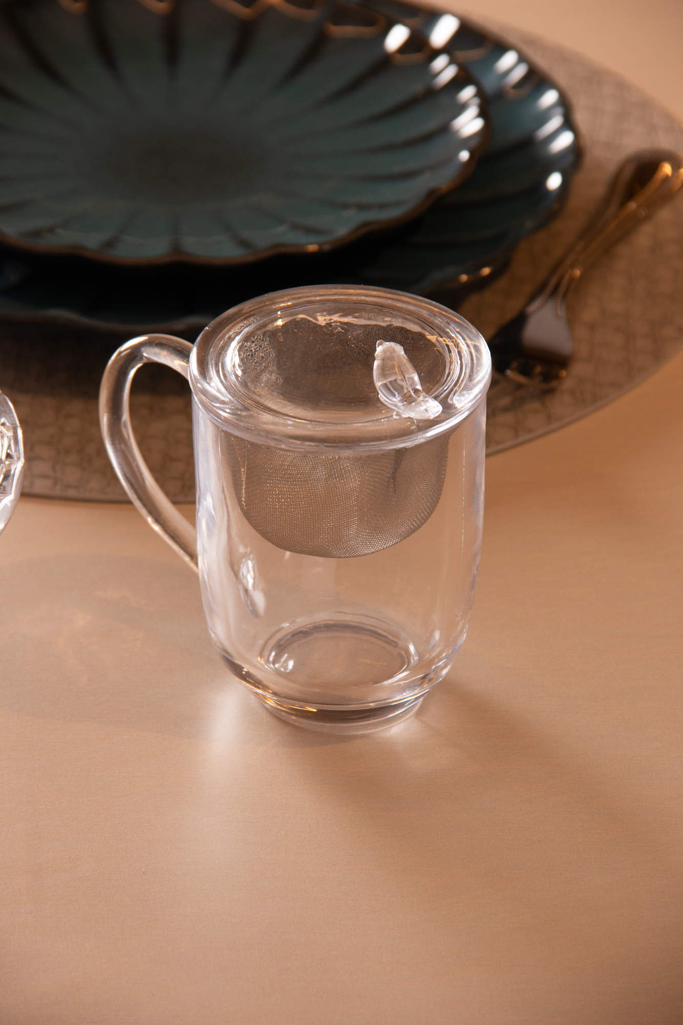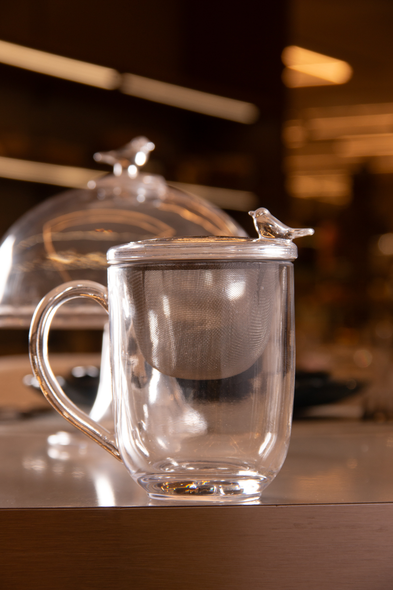 CANECA CRISTAL COM TAMPA E FILTRO PARA CHA BIRD 350ML
