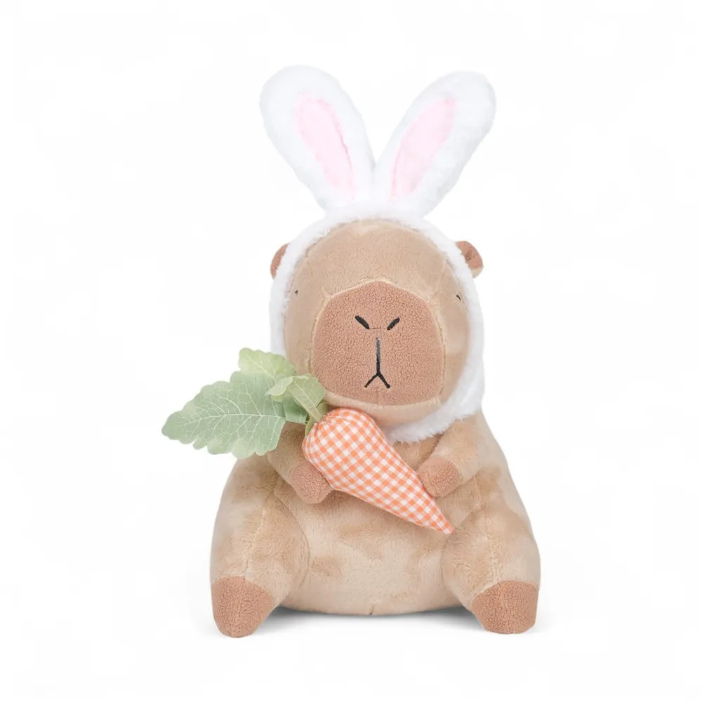 – Design Exclusivo: Uma capivara marrom com adoráveis orelhas de coelho, perfeita para a Páscoa.