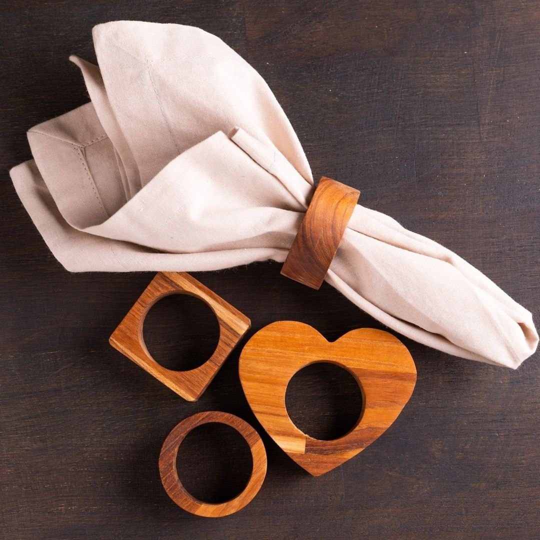 CJ 4 ANEIS P/GUARDANAPOS MADEIRA QUADRADO TECA 5,5x2cm