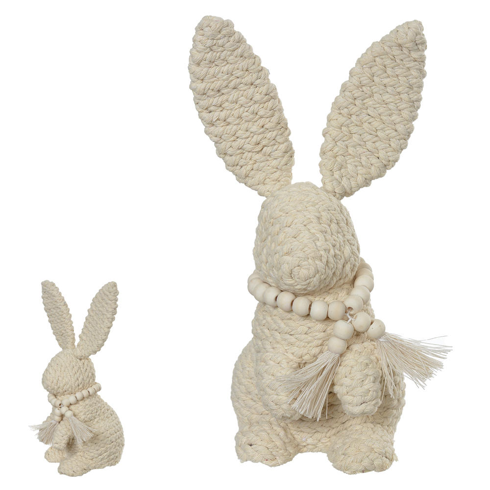 COELHO DE PASCOA DE CORDA C/ COLAR BEGE 23X10X12CM
