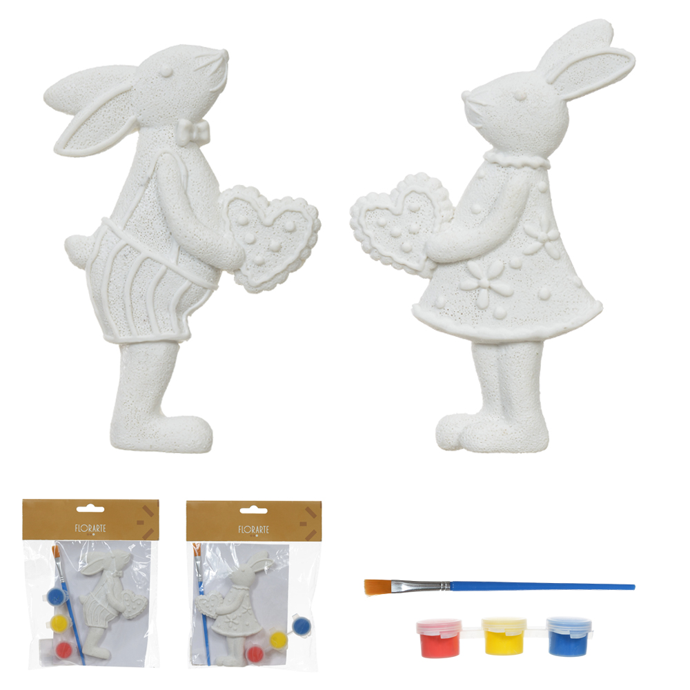 COELHO DE PASCOA EM RESINA C/ KIT PINTURA SORTIDO 1 UN 12X7,5X1,5cm