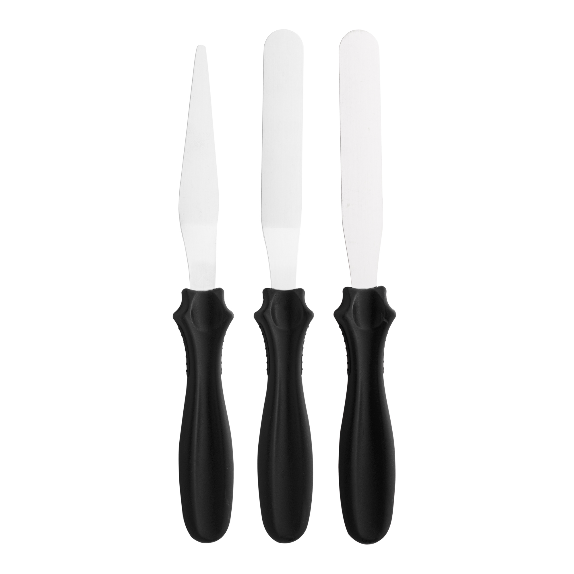 CONJUNTO 3 ESPATULAS PARA CONFEITARIA DE ACO INOX PRETA 24cm x 9cm