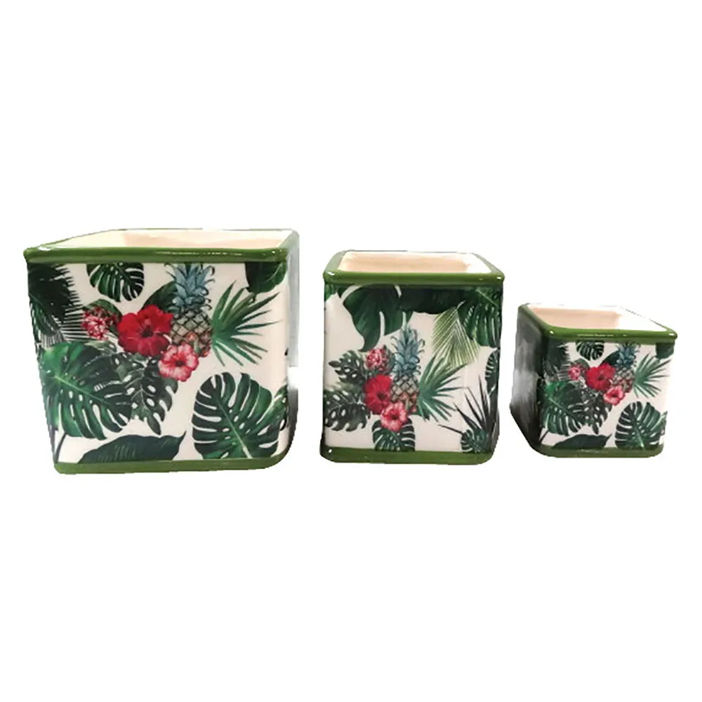 CONJUNTO DE CACHEPOTS DE CERAMICA FLORES 3 UNIDADES