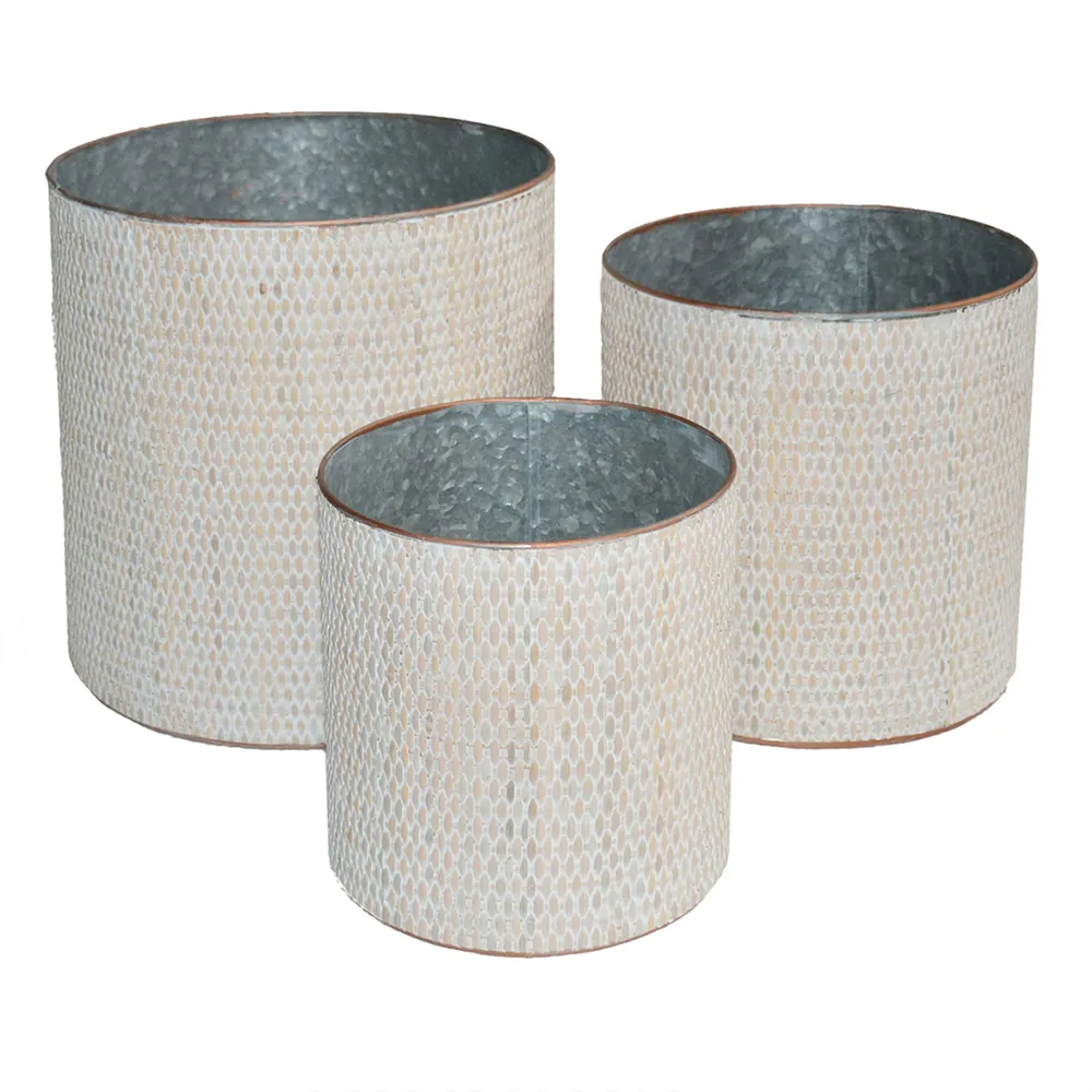CONJUNTO DE CESTOS DE METAL BEGE E BRONZE 3 UNIDADES