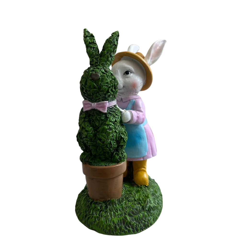 DECORAÇÃO COELHA DA PÁSCOA JARDINEIRA EM RESINA – 21X16cm