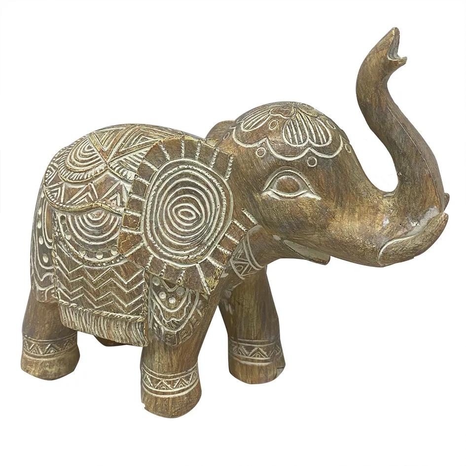 ELEFANTE DECORATIVO EM RESINA BEGE 7X15X16CM