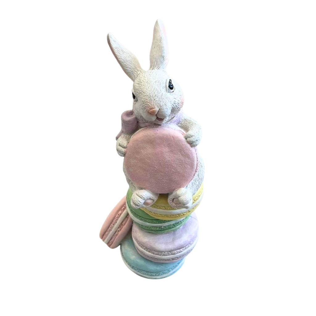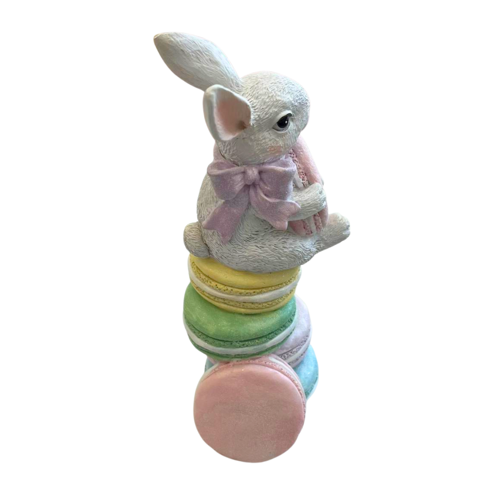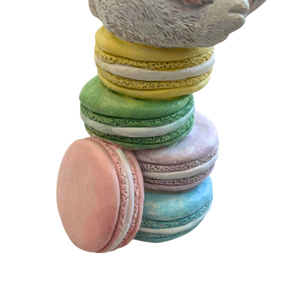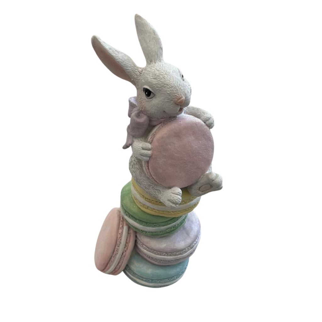 ENFEITE COELHO DA PASCOA TORRE DE MACARONS CANDY RESINA 24CM