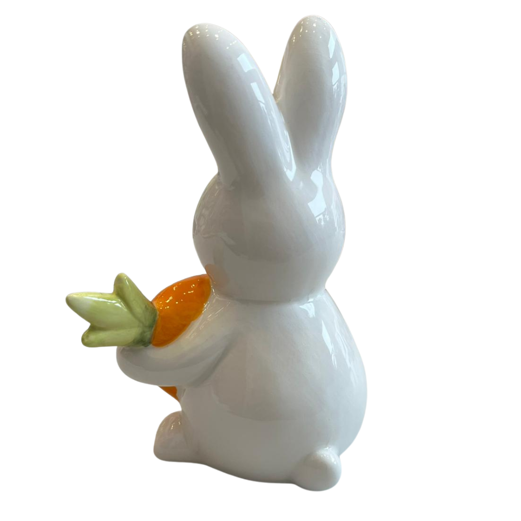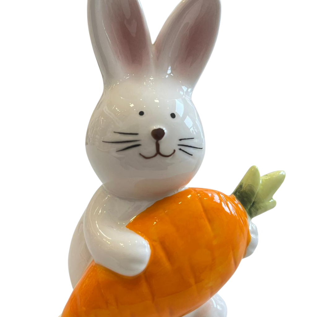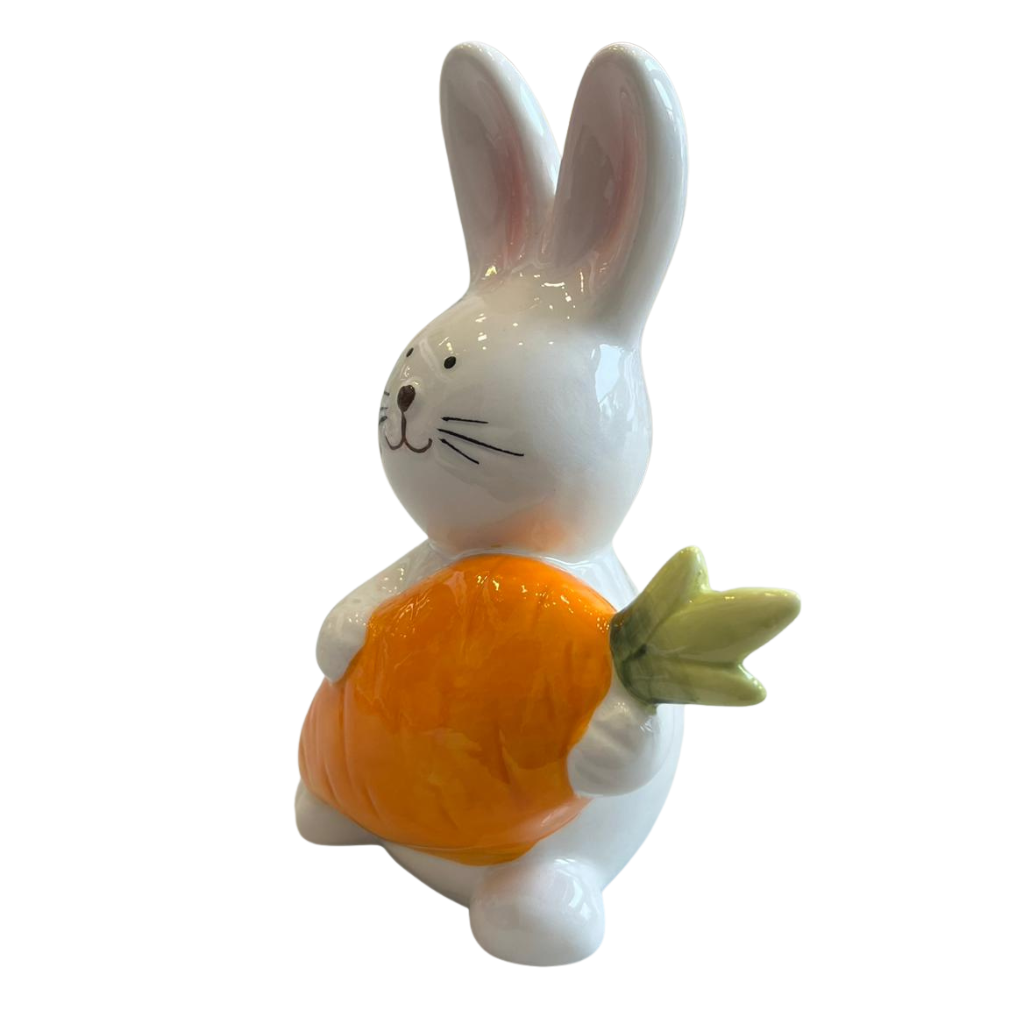– Charmoso Detalhe: Um adorável coelho em cerâmica com sua cenoura, perfeito para decorar seu lar.