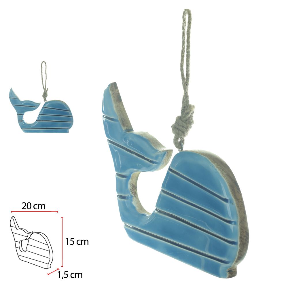 ESCULTURA DECORATIVA MADEIRA BALEIA AZUL 15X20X1,5cm