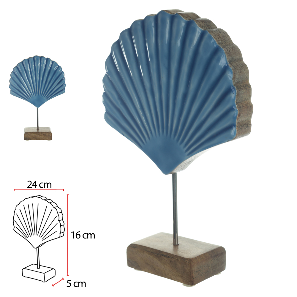 ESCULTURA DECORATIVA MADEIRA CONCHA AZUL 24X16X5cm