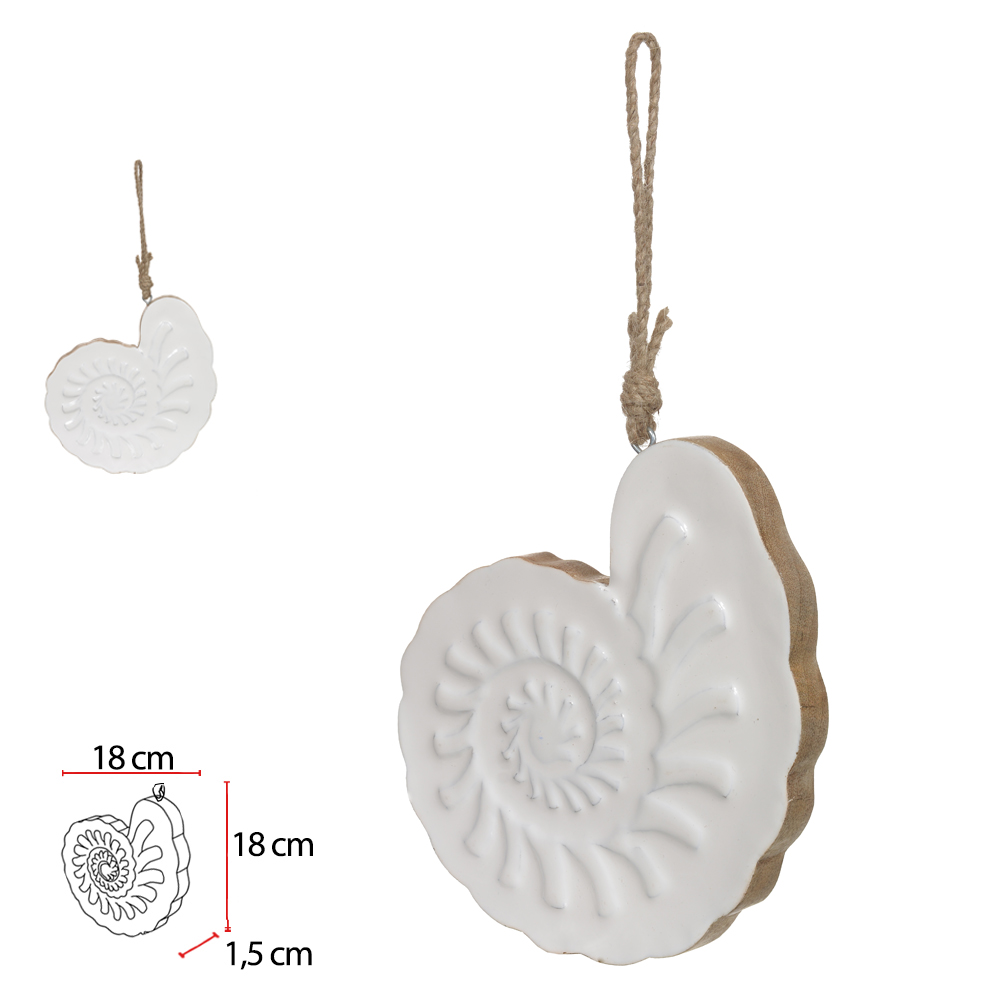 ESCULTURA DECORATIVA MADEIRA CONCHA BRANCA 18X18X1,5cm