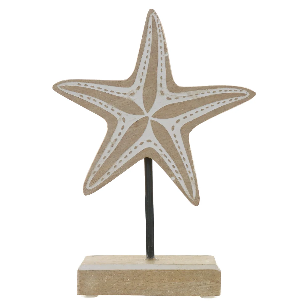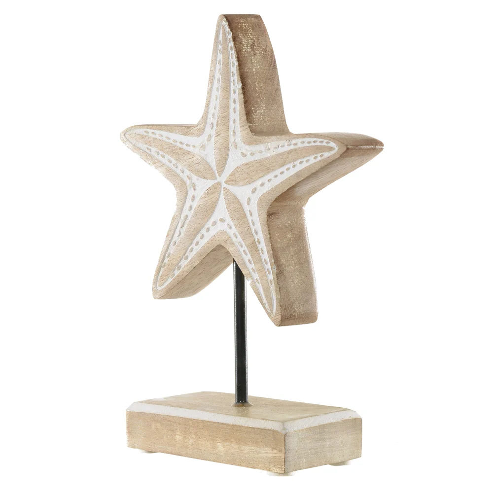 Escultura Decorativa Madeira Praia Estrela Mar Bege 21x15cm