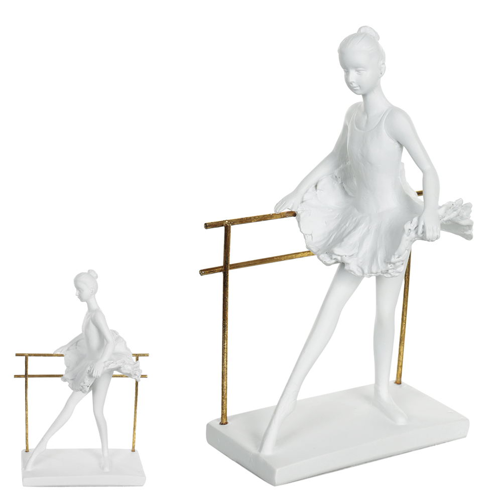 ESCULTURA DECORATIVA POLIRESINA BAILARINA BRANCO DOURADO 19,5X13X8cm