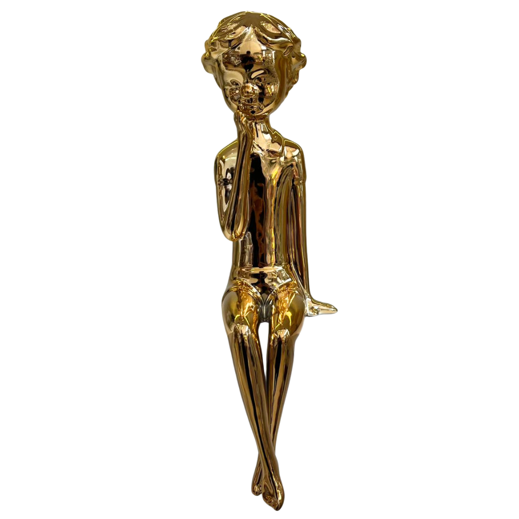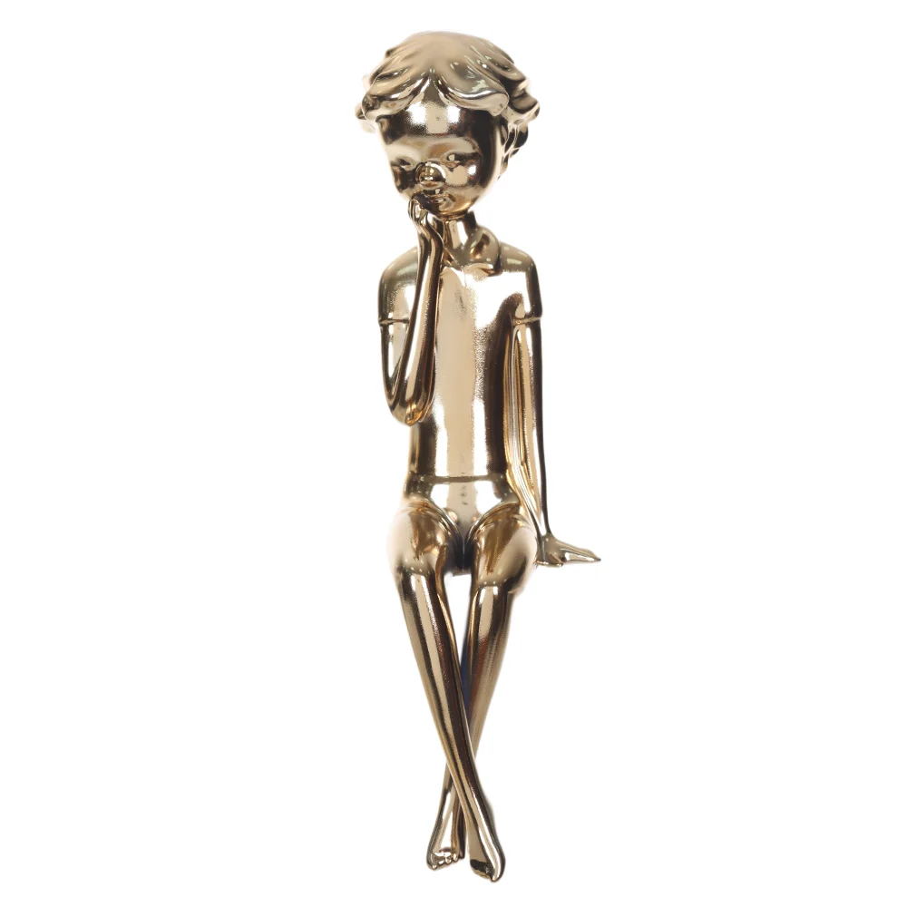 ESCULTURA PRATELEIRA LIVRO MENINO PENSATIVO DOURADO 35X12CM