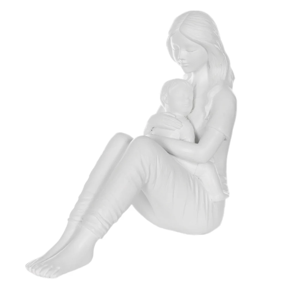 Escultura Resina Família Mãe e Filho Branco 15x17x8cm